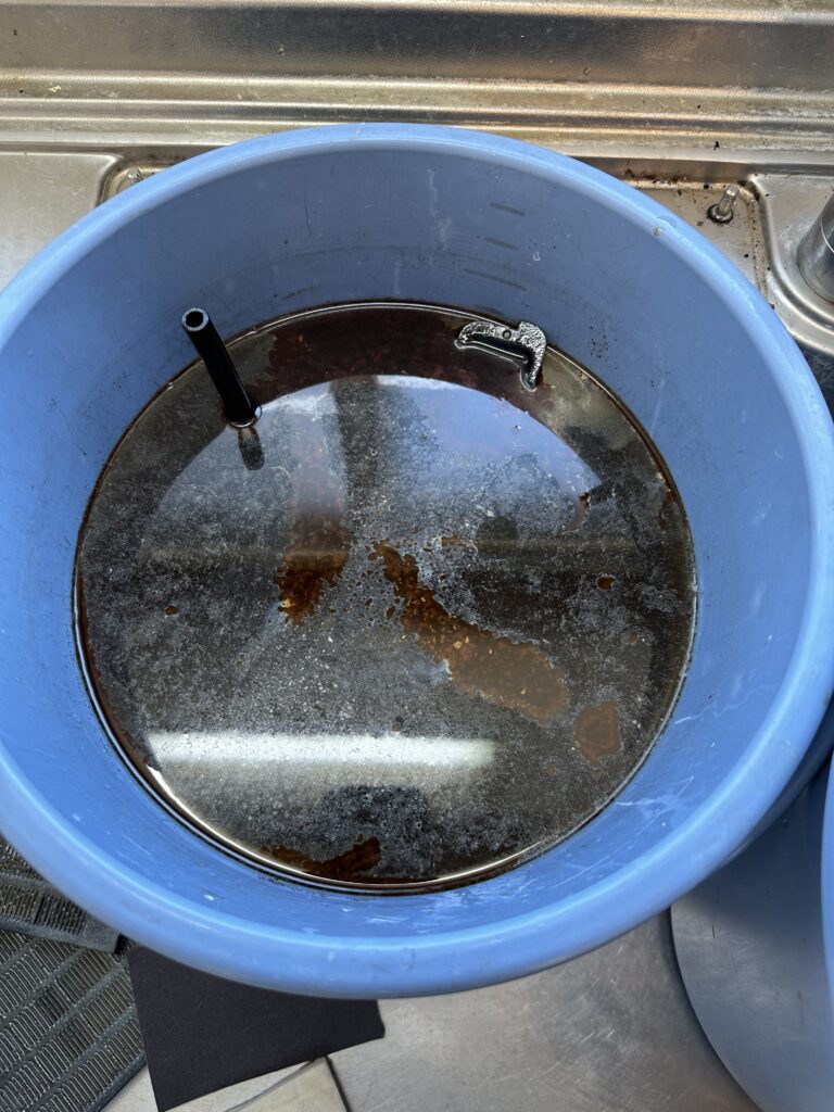 換気扇のパーツを取り外し、水に漬けただけでこんなにも油汚れが!!
